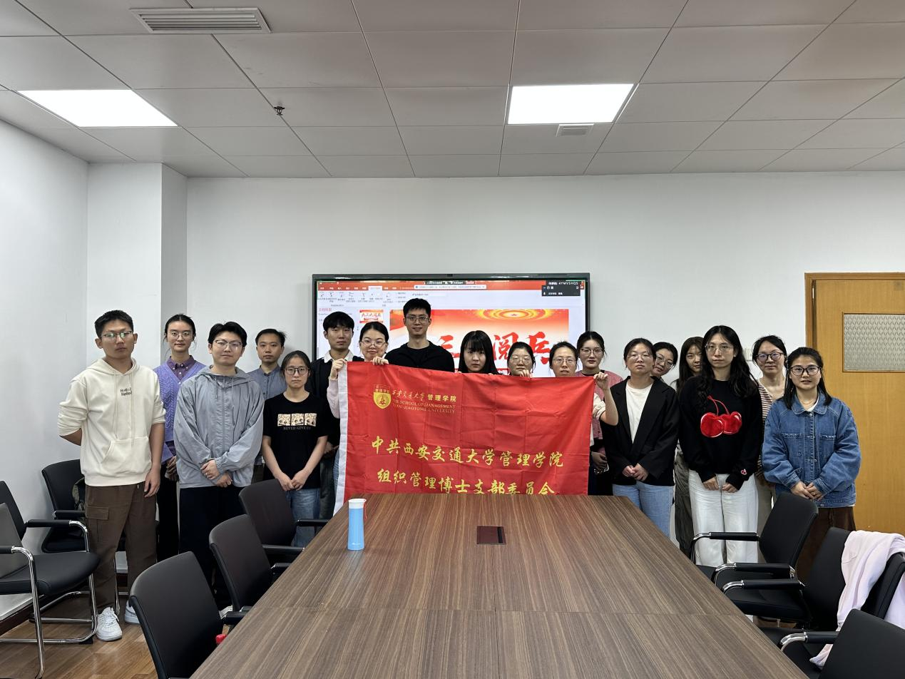 2025年9月24日,西安交通大学管理学院组织管理博士支部成员在管理学院342室开展了2025年9月例行的党组织生活会。此次会议主题为“习近平总书记在纪念中国人民抗日战争暨世界反法西斯战争胜利80周年大会上的讲话”。会议由组织管理博士支部书记易磊主持,线上线下同时展开,共出席26人。