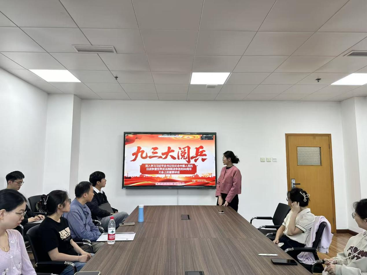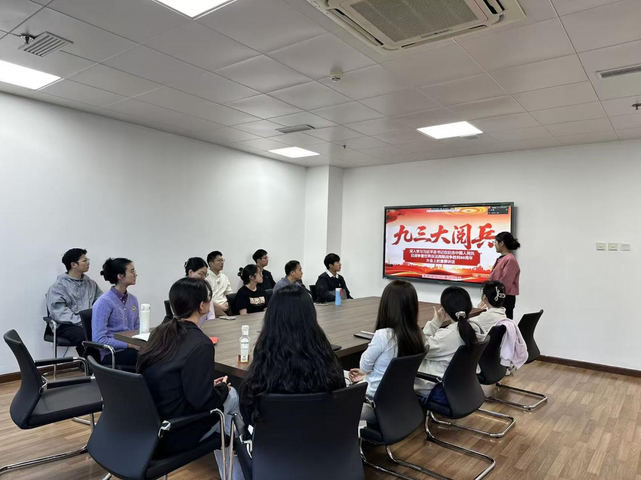 第三部分,刘瑶瑶同志带领大家一起深入学习“习近平总书记在纪念中国人民抗日战争暨世界反法西斯战争胜利80周年大会上的讲话”。习近平总书记全面回顾了中国人民抗日战争的伟大历程,深刻阐释了抗战胜利的重大意义,再次宣示了中国人民“铭记历史、缅怀先烈、珍爱和平、开创未来”的坚定立场,具有很强的政治性、思想性、战略性和指导性,必将激扬起为实现中华民族伟大复兴、推动构建人类命运共同体而奋斗的磅礴伟力。
